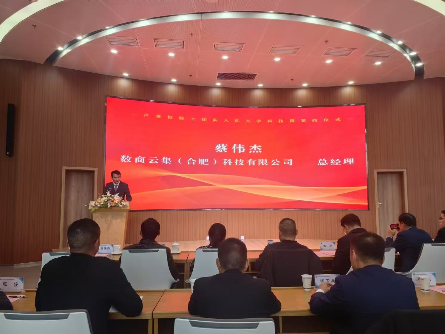 同心勠力,携手并进。2024年11月27日,卢秉恒院士团队(安徽国数云科增材制造有限公司)入驻大学科技园有限公司签约仪式在少荃湖科创中心举行。新站高新区党工委委员、管委会副主任傅壮,社会发展局副局长蔡建春,科创办副主任曹雪梅,学校资产经营有限公司总经理蔡杰、科学院办公室处长蔡荣林、科技处副处长汪天明、大学科技园总经理邬登东,数商云集(合肥)科技有限公司董事长程绍罡、总经理蔡伟杰,安徽国数云科增材制造有限公司总经理刘飞等相关负责人参加本次签约仪式。仪式由邬登东主持。