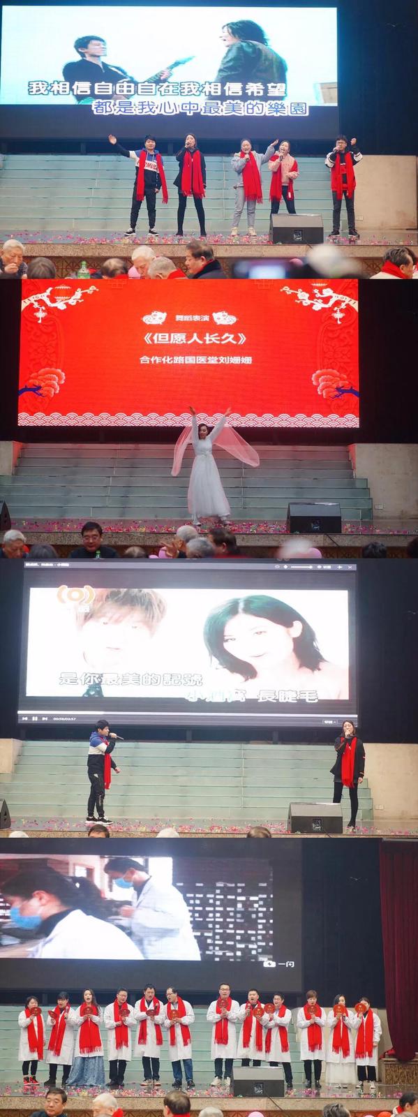 文艺汇演上,产业各部门各展所长,从安保药业一段沁人心脾、绚丽多彩的集体舞《遇见》拉开了新春庆典的帷幕,其间贯穿衣袂飘飘的女子舞《但愿人长久》,轻盈优美扇子舞《红梅赞》,专家演唱《月半小夜曲》、《在那遥远的地方》、《父亲的草原母亲的河》、《爱拼才会赢》、京剧演唱《空城计》、《三家店》,大合唱《奔跑》、《我相信》,赢得全场热烈掌声的小品《非诚勿扰》,晚会庆典高潮迭起,令人目不暇接,精彩纷呈。