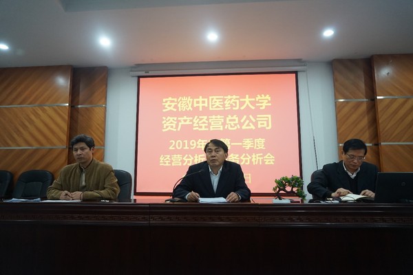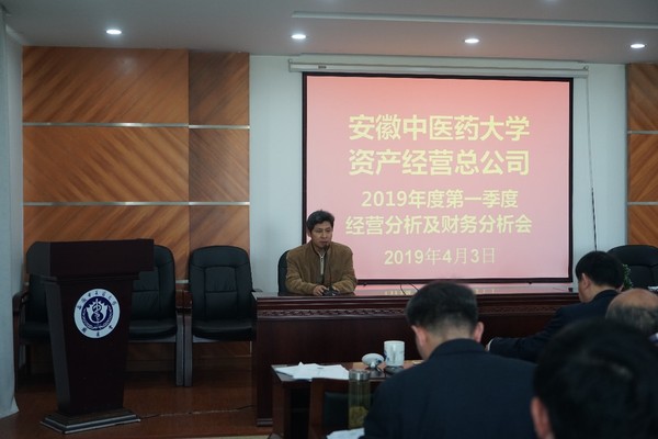 2019年4月3日下午,资产经营总公司第一季度经营分析及财务分析会议在合作化路国医堂如期召开,总公司党总支书记陈卫东、高级顾问李瑞洲和各部门、实体经营负责人、财务全体人员以及各实体中层干部出席会议。会议由总公司总经理张亚辉主持。