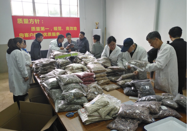安保药业公司依托安徽中医药大学中药饮片鉴定专家资源,本着质量第一、公平公正的原则,严把药品质量采购关。本次由5名资深中药鉴定专家组成评审小组,对无任何标识的样品进行品质鉴定、评定,筛选优质饮片。