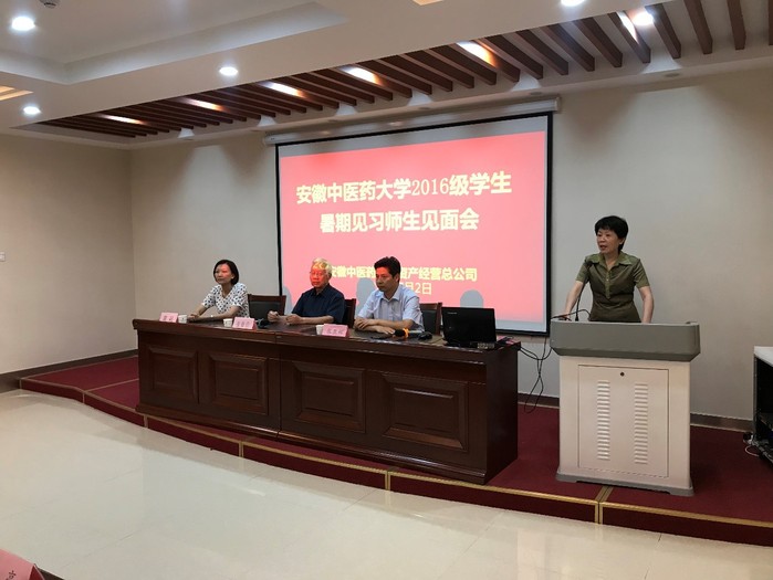 2019年7月2日晚,安徽中医药大学2016级学生暑期见习师生见面会在花园街国医堂举行。安徽中医药大学资产经营总公司总经理张亚辉、名老中医专家代表张载信、安徽中医药大学中医学院副书记黄莉、中医学院辅导员方林莉、58名见习学生和总公司相关负责人参加了本次见面会。会议由花园街国医堂负责人惠燕主持。