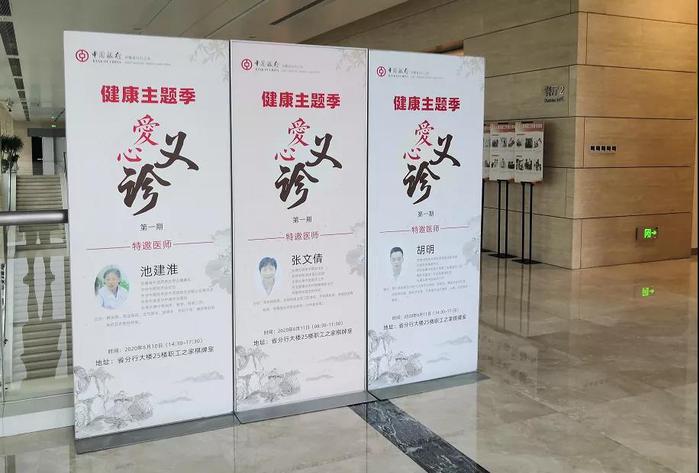 为响应安徽省暨合肥市卫生健康“一法一例”宣传活动,进一步加强中医药建设,传播中医药健康文化、传承中医药优势、拓展中医药服务领域,更好地造福人民群众健康,发挥中医药在健康中国的重要作用。6月10日—6月11日,由中国银行安徽省分行工会携手安徽中医药大学国医堂合作化路门诊部,举办了“纯中医进中行、关爱职工健康”为主题的三场中医义诊活动。