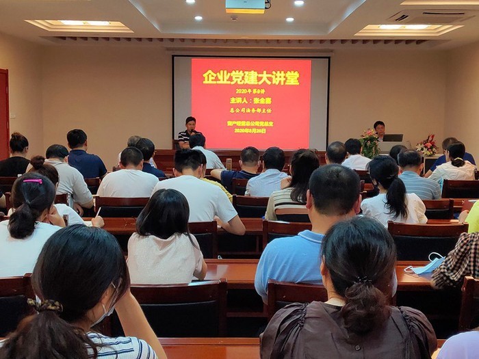 8月26日晚,资产经营总公司《企业党建大讲堂》第八讲——《2020中华人民共和国民法典亮点解读》在花园街国医堂三楼会议室正式开课,本次学习会邀请到资产经营总公司法律顾问张全喜主讲。资产经营总公司党总支委员、总经理张亚辉主持学习会,总公司全体党员、入党积极分子、中层干部及所有财务人员共计50余人参加了本次党课学习。