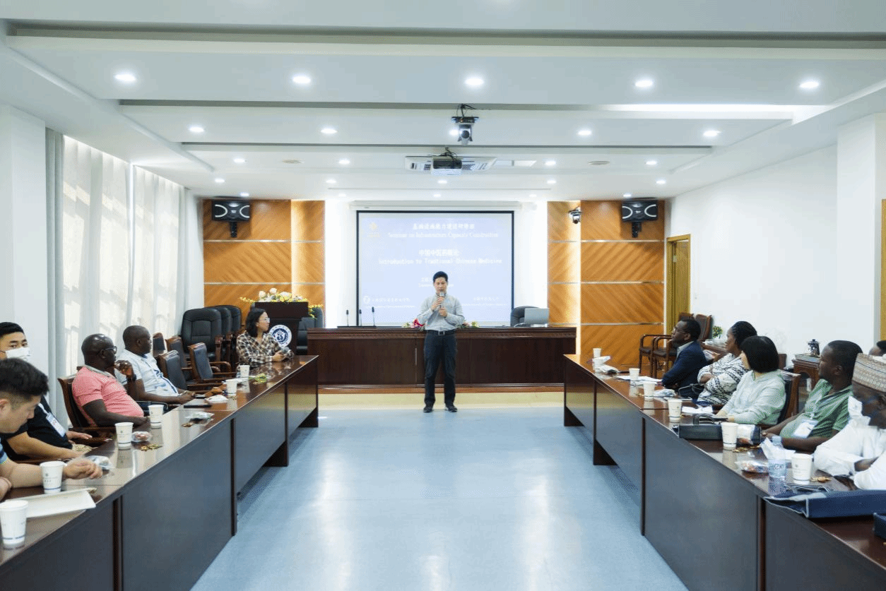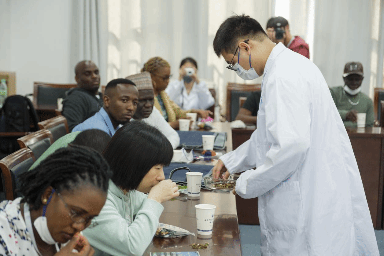 10月15日上午,由商务部主办、省商务厅指导、安徽国际商务职业学校承办、合肥工业大学建筑与艺术学院和绍兴职业技术学院协办的发展中国家“基础设施能力建设研修班”成员一行赴国医堂参观体验中医药传统文化并聆听讲座。据悉,此次研修班由来自安提瓜和巴布达、巴巴多斯、埃及、蒙古、尼日利亚、坦桑尼亚6个国家的16名学员组成。