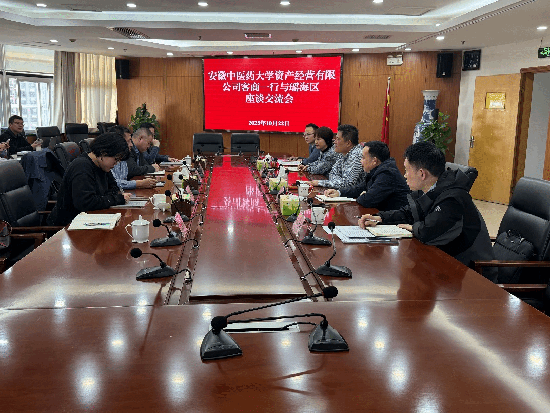 10月22日,资产经营有限公司党委书记、董事长孙道礼,党委副书记、总经理蔡杰,中试平台(制剂中心)筹备办公室主任余炜等一行赴合肥市瑶海区政府座谈交流。瑶海区委常委、常务副区长柳伟,区工信局副局长李烁,区卫生健康委员会党委书记罗效民,以及区投促中心、区科创集团等相关单位负责人参加座谈。