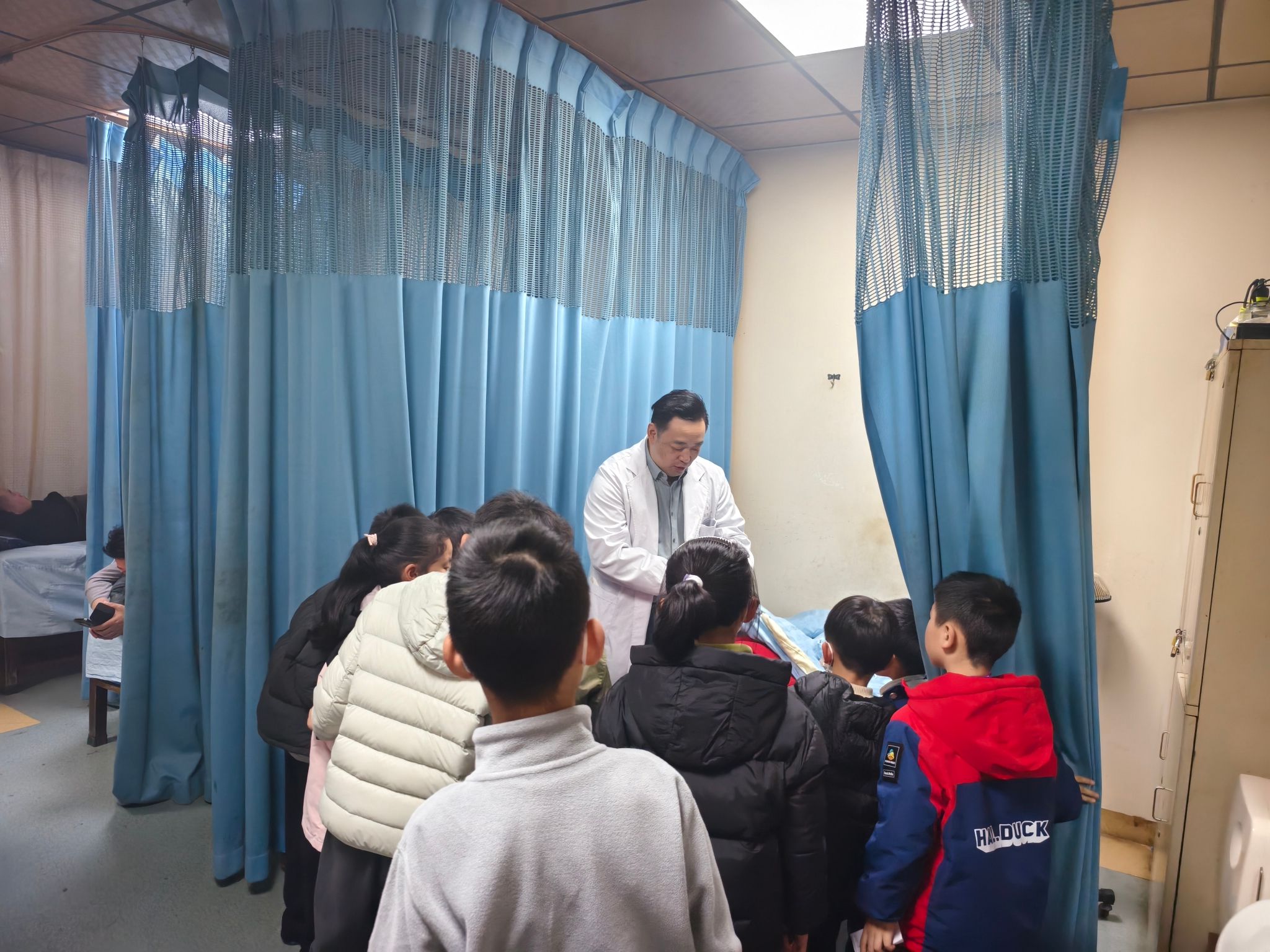 活动最后,孩子们走进诊室开启“深度探秘”。他们安静专注地观摩医生演示针灸、艾灸、拔罐、刮痧等传统中医技法,认真了解各类技法的适用场景。通过观察诊室布局、参与互动小游戏,孩子们初步掌握了“望、闻、问、切”四诊合参的基本要领,更轮流化身“小中医”模拟诊断,在趣味实践中感受中医诊疗的奇妙之处。