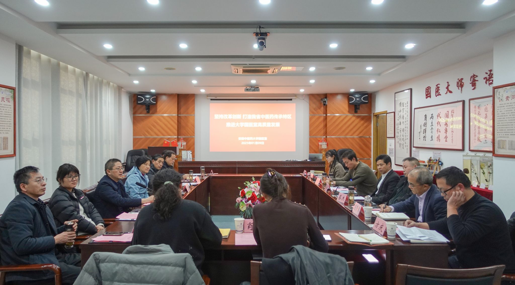 1月9日下午,学校党委统战部组织我校省级以上人大代表、省政协委员和省政府参事等一行8人赴国医堂,围绕“坚持改革创新 打造我省中医药传承特区 推进大学国医堂高质量发展”这一主题开展调研座谈。资产公司主要领导、相关部门及国医堂负责人参加。本次会议由资产公司党总支书记、董事长张亚辉主持。会上,资产公司总经理蔡杰作《国医堂专项报告》,学校党委统战部副部长刘亚洲简要介绍本次调研会的背景、目的及议程安排。在听取报告后,...